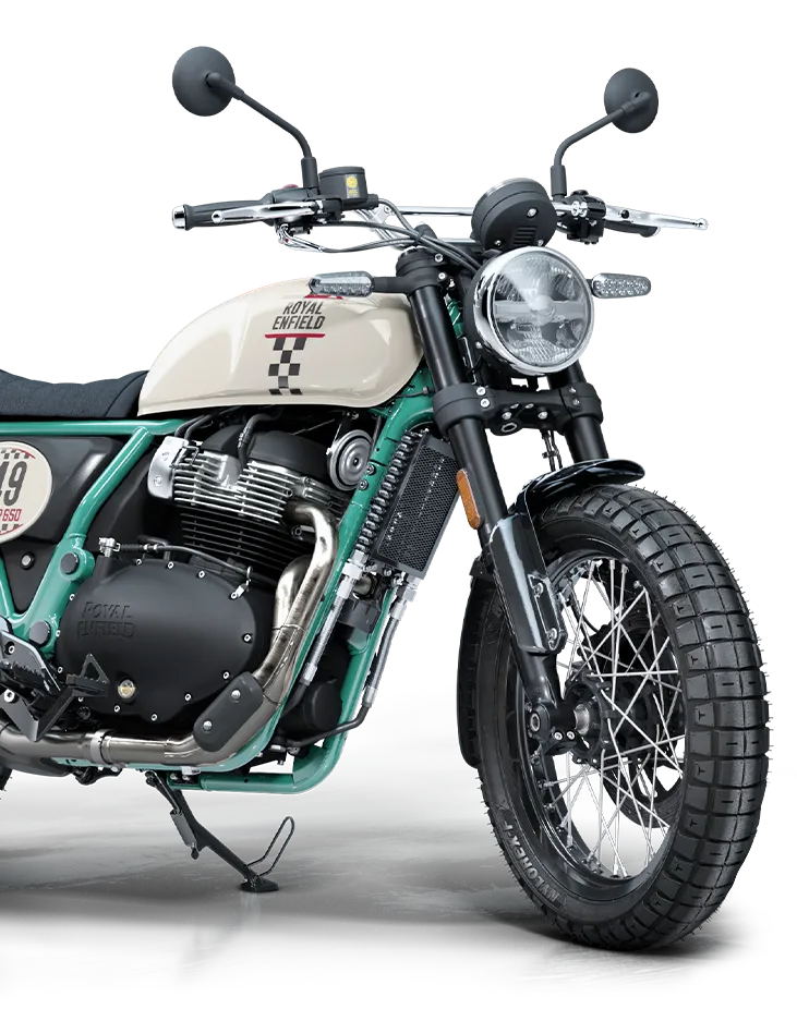 Fueled by the gut and powered by Royal Enfield’s proven 650cc parallel twin engine. Cased in a highly durable, premium black finish, it looks rugged and purposeful, amplifying the Scrambler attitude.