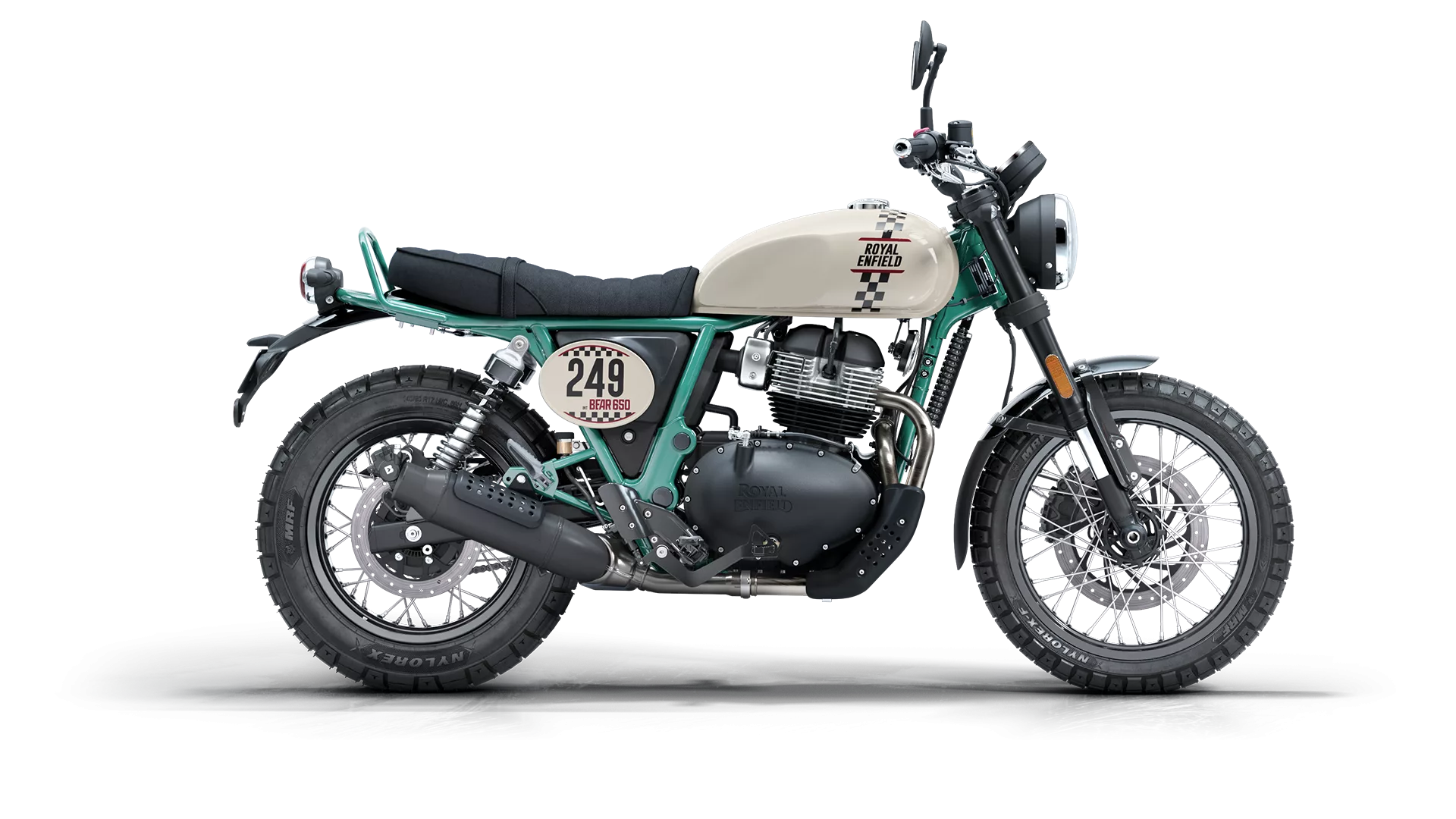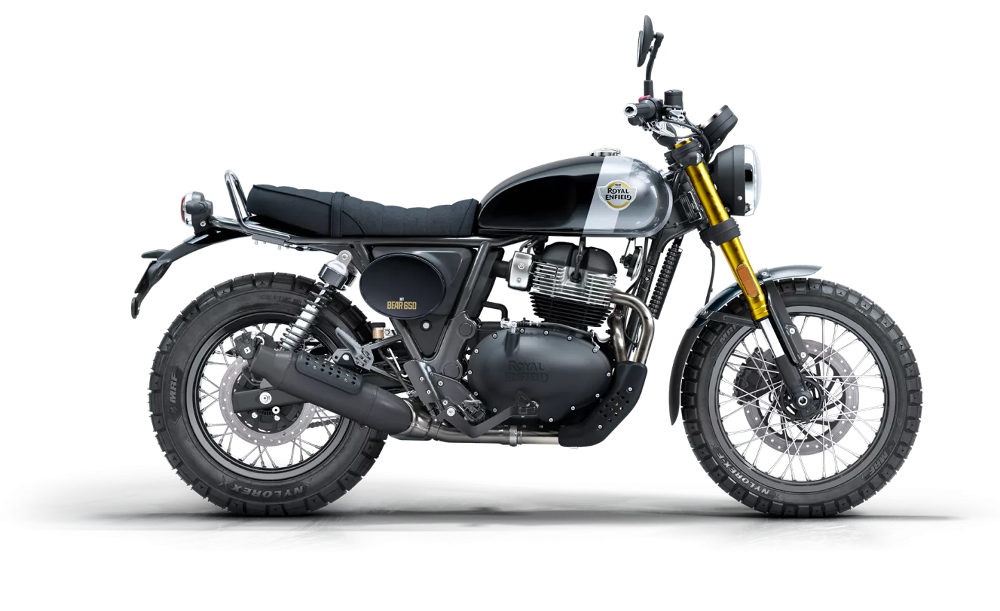 Featuring switchable dual-channel ABS and 19-inch front / 17-inch rear spoked wheels wrapped in MRF NyloRex dual-purpose tires, the Bear 650 feels just as confident on pavement as it does when the road runs out.