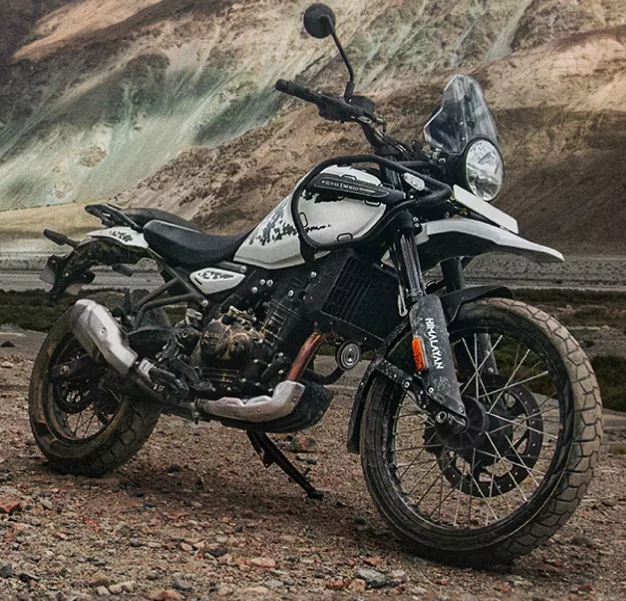 The best chassis is the one you don’t notice. From the veratile 21″ front 17″ rear wheel combination to the large “enduro” footpegs and wide handlebars, the Himalayan works with you in all situation on or off-road. The slim seat and tank let you get your feet firmly on the ground when you stop, while increased ground clearance and longer travel suspension let you choose the roughest tracks.