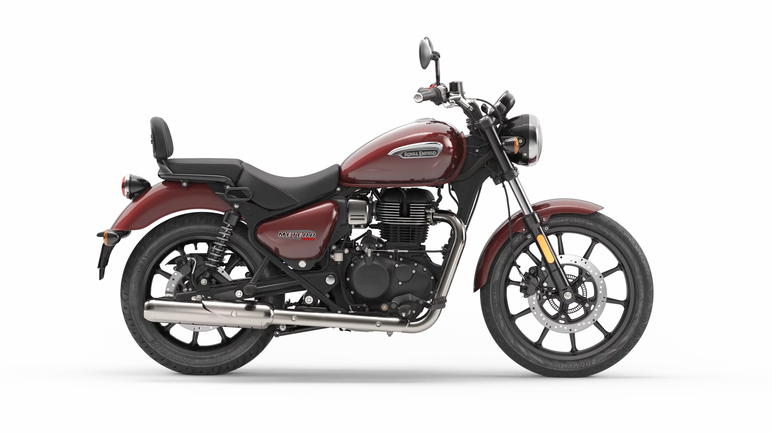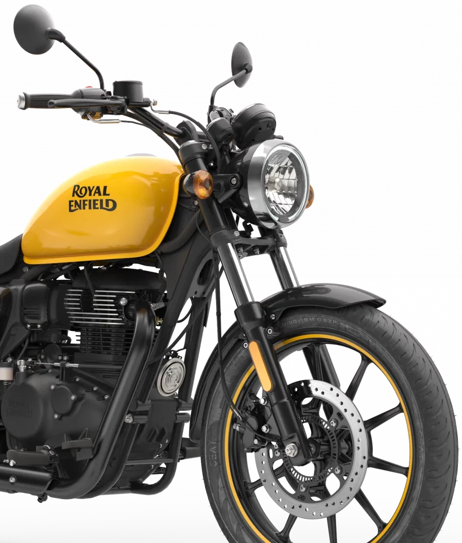 Wider rear tire for improved traction and riding confidence. The Meteor 350 ensures peace of mind on long rides with tubeless tires and dual channel ABS for safety.