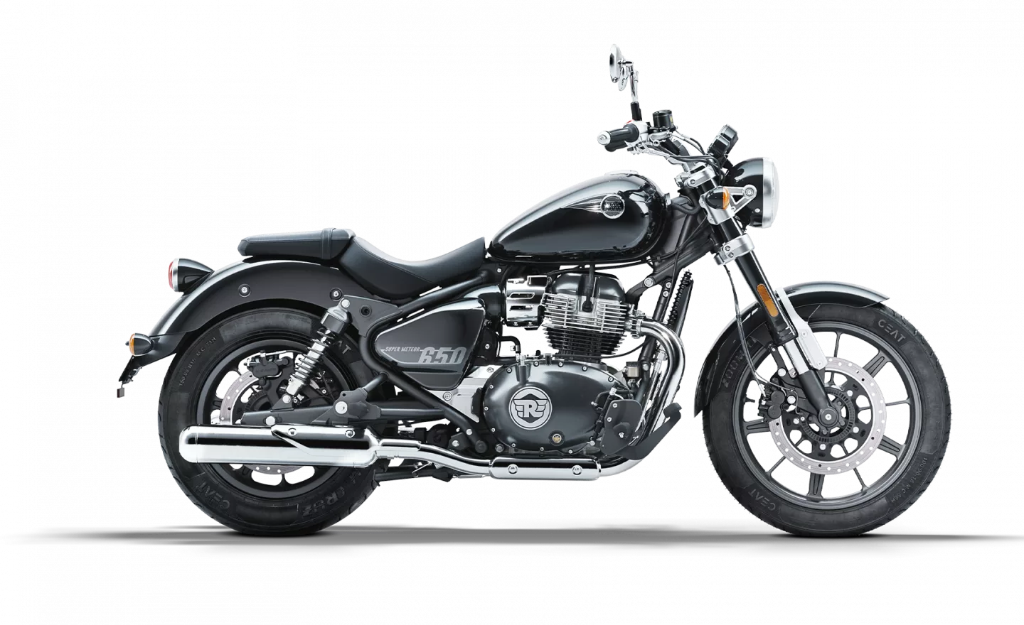 A quintessential cruiser, the Super Meteor 650 combines uncluttered controls and instrumentation with relaxed rider ergonomics; rock-steady stability on highways with pure riding pleasure even on the most winding roads where it keenly changes direction. Its flexible, smooth engine has torque aplenty and its cool retro styling is infused with clearly recognisable Royal Enfield DNA.
