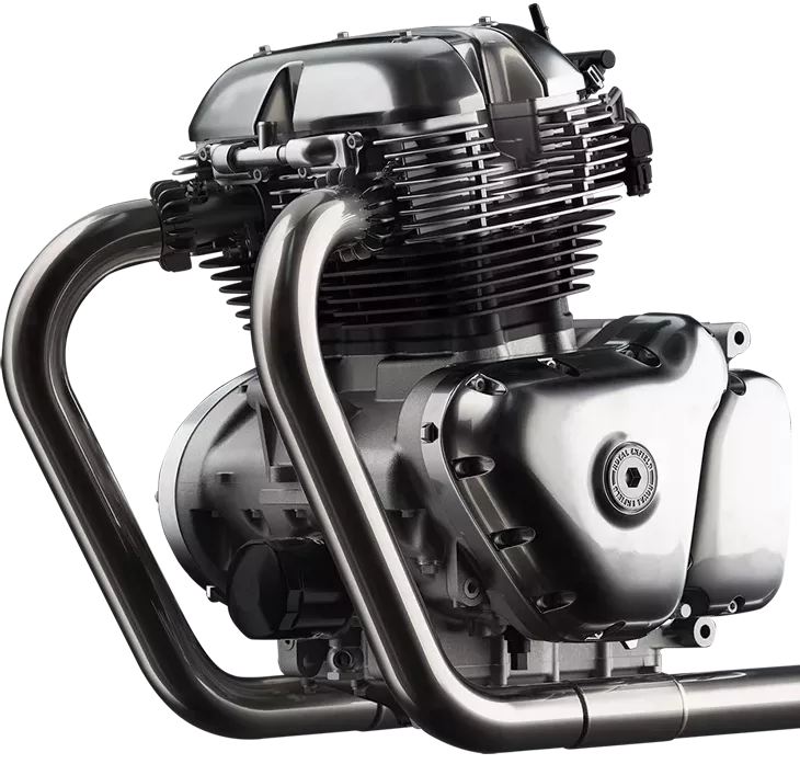 648CC. 47PS of Power. 52.3 Nm of torque. At the core of the Super Meteor 650 is our iconic parallel twin engine, which offers seamless gear transitions, strong low-end acceleration and an effortless throttle response. A new cylinder head mount gives high torsional stiffness, making your riding experience smooth, steady and responsive, at both low and high speeds.