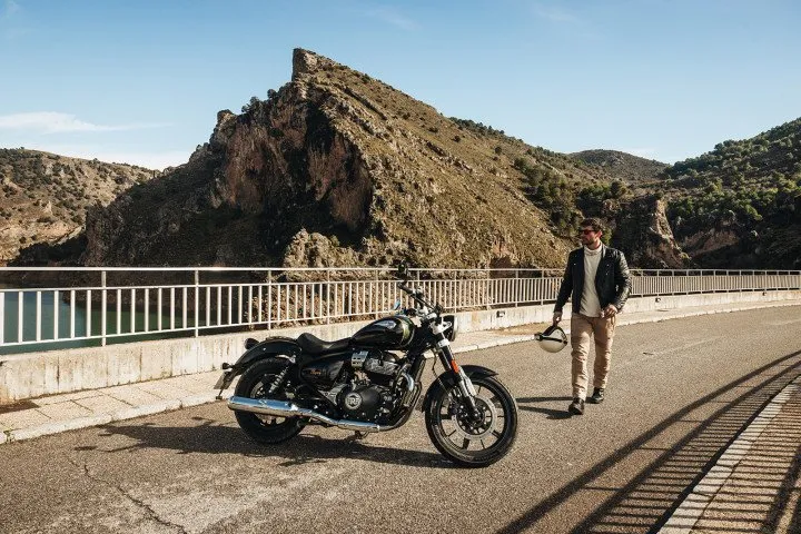 Its flexible, smooth engine has torque aplenty and its cool retro styling is infused with clearly recognisable Royal Enfield DNA. It has a physically imposing presence, yet remains an easy ride, whether you are traversing vast landscapes or heading towards the vanishing point on the horizon.